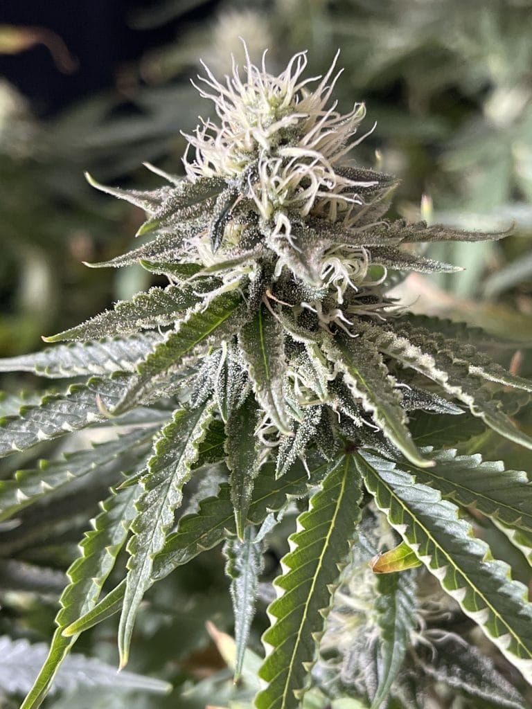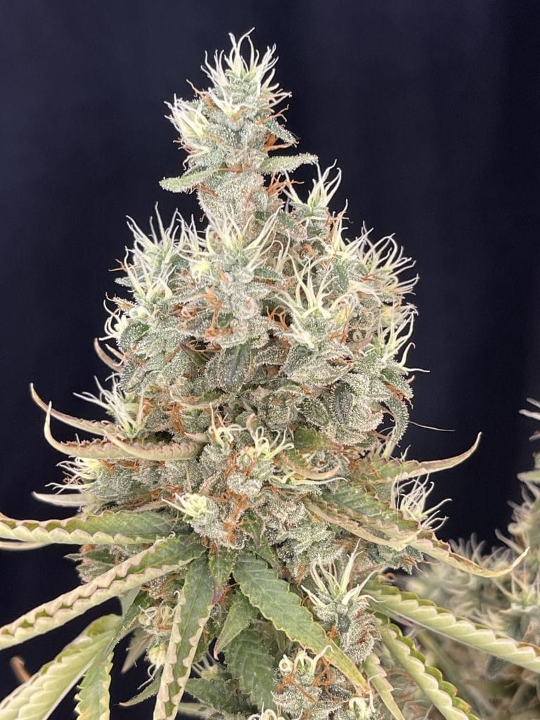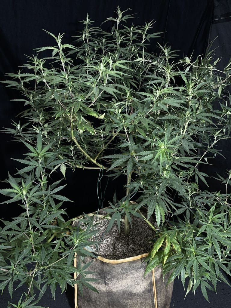 Robust bushy structure which is conducive to training, will likely require selective defoliation of inner branches; medium/average sized leaflets. Large, sticky, trichome covered flowers that swell during flower to create a high yeilding colas with bright red/orange stigma that weigh down branches and will likely require support. Some phenos observed exhibited foxtail flower structure in high heat environments.